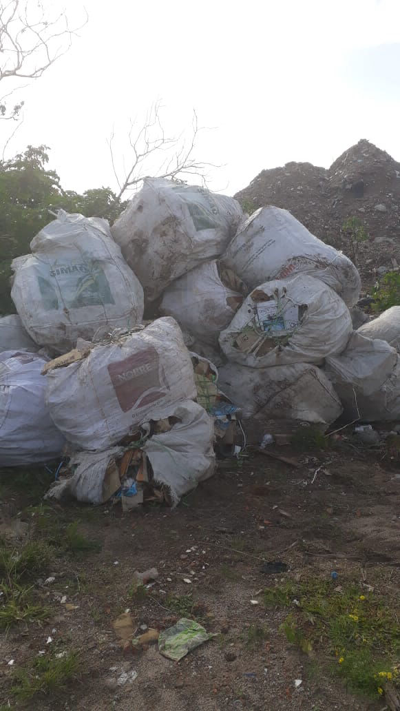 Para os resíduos de papelão, sacos de cimento e garrafas pet é dado o devido destino.